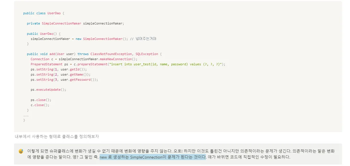 . 그래서 이분의 블로그가 더 도움이 될 것 같다. 좋았던 내용은 바이트코드를 까본 것이다. 사람이 눈으로 보기전까진 감이 안오는데 보니깐 바로 감이 왔다. 좀 더 추가 하자면 내가 정리한 코드 중 토비의 스프링을 보고 영감을 얻을 코드가 있다. 설명하는 내용은 초기화를 어떻게 하는가에 따른 객체에 영향? 이라고 말할 수 있을 것 같다. “오브젝트와 의존 관계”를 참조하면 좋을 것 같다.