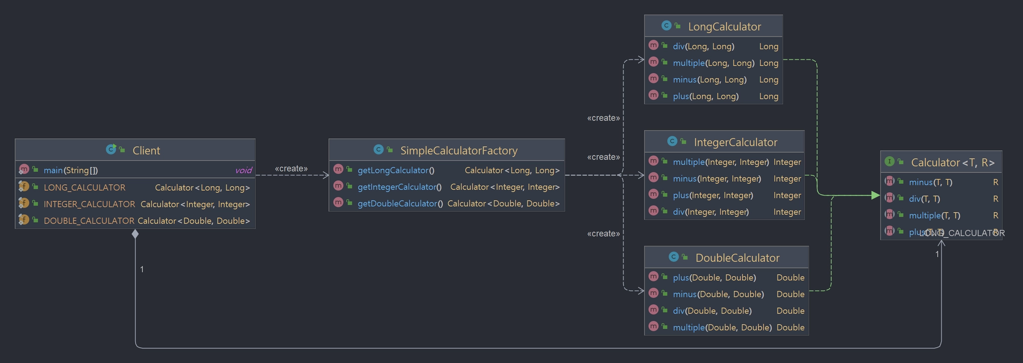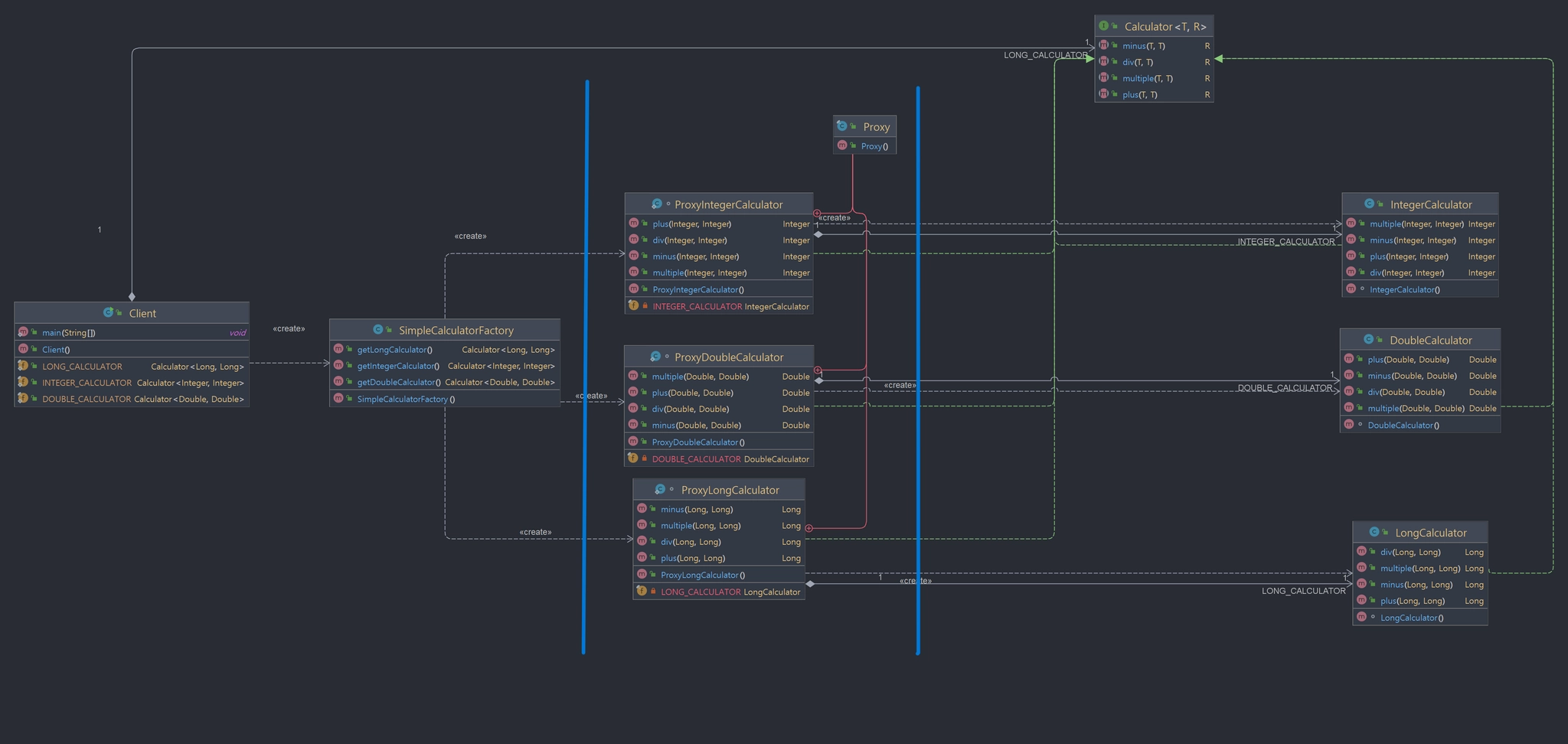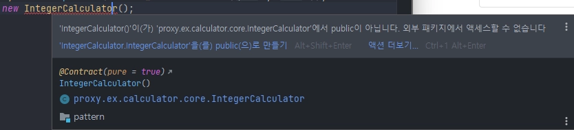 DoubleCalculator() {} | LongCalculator() {} | IntegerCalculator() {} 일 때, 같은 패키지인 Proxy Class는 new XXXXCalculator()가 가능하지만 Client Class에서는 전혀 못 만든다.