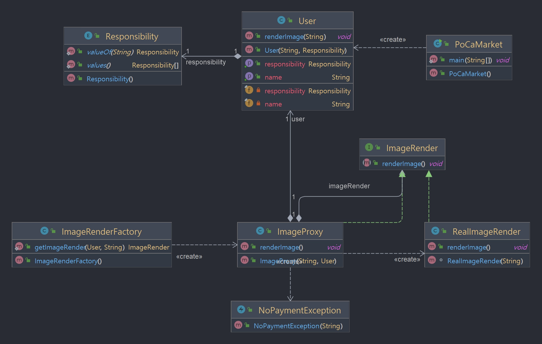 정도가 추가 되었다. 그리고 User 객체는 image를 렌더링 할 수 있다. 그런데 우리의 서비스에서 8K 사진을 들고 오는 작업은 고성능의 CPU작업을 요구한다. 그래서 멤버십을 가입한 사람만 8K사진을 렌더링 할 수 있다. 이럴때 보호 프록시를 사용하여 다운로드 기능 자체를 User에 심을 수 있다. 이렇듯 기존 기능(RealImageRender)에는 아무런 변화가 없다.