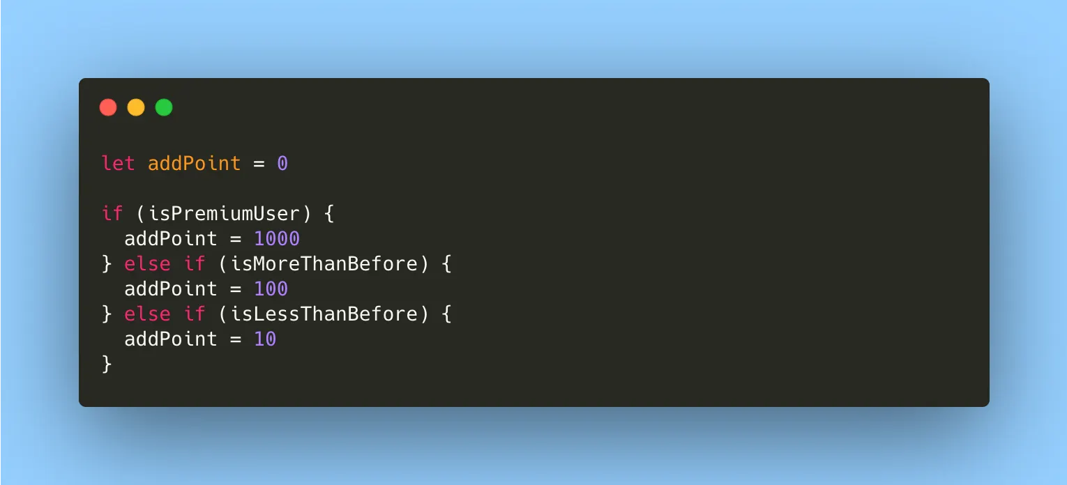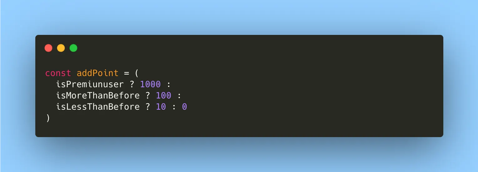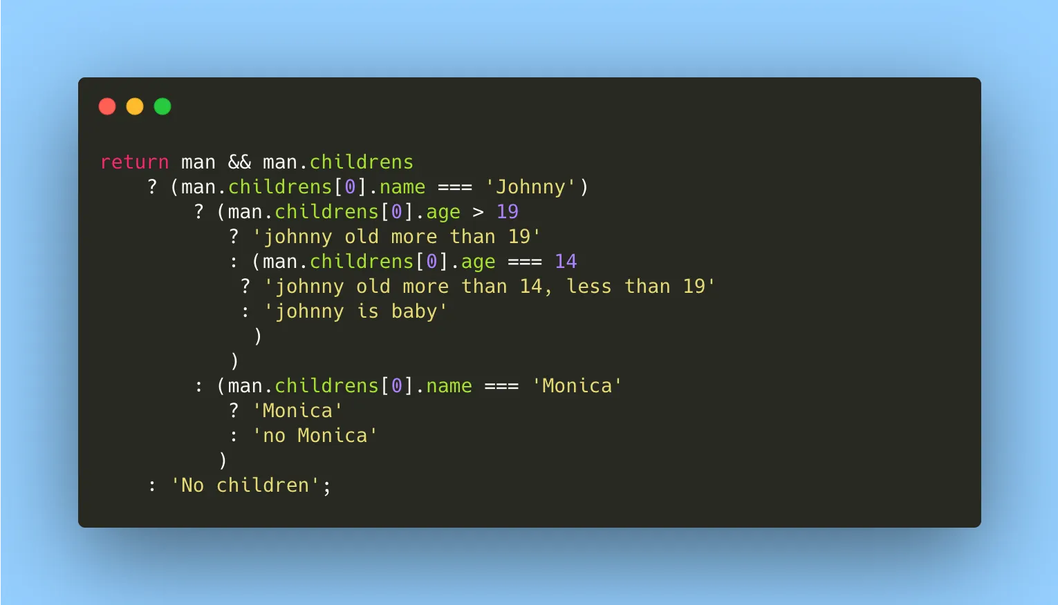 이렇게 쓰면 아주 곤란해진다. 누가 와도 읽기 싫어지는 코드이다. 그런데 재미있는 사실은 3항 연산자는 잘못이 없다. 그럼 이런 코드는 잘못된 코드지만 잘 된 코드는 무엇일까?