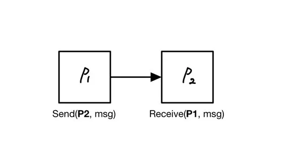 간단하게 p1이 p2의 정보를 알고 전송하는 것이다. p2도 마찬가지고 p1의 정보를 알고 수신하는 것이다.