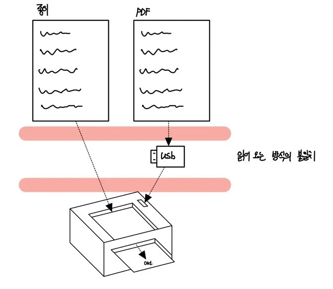 하지만 아주 큰 문제가 있다. 실제 종이를 넣을 때와 PDF(전자 문서)를 넣을 때 반복하는 방법이 다음과 같이 달라진다.