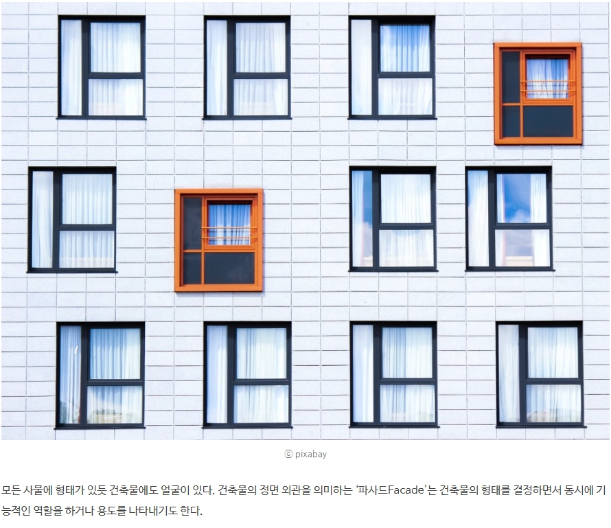 실제로 파사드 디자인이라는 것은 건축물에서 찾아볼 수 있다. 이는 필자가 교양 수업인 실내디자인 강의를 통해서 알고 있었다. 그래서 이 디자인 패턴은 건축물의 얼굴을 만든다고 생각하면 엄청 쉽게 느껴 질 것이다.
