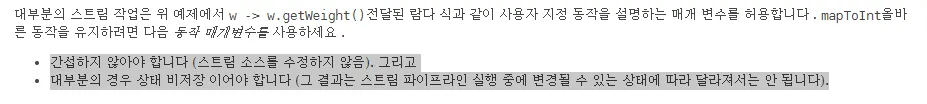 java 8 부터 추가된 stream API 의 peek, map을 사용하던 도중 sonaLint를 통하여 peek사용과 map 사용이 잘못된 부분을 확인함. 해당 API를 이런식으로 사용한 이유는 객체의 내부 값을 순차적으로 적용하고 싶었음. 하지만 문제가 발생할 수 있다는 점을 sonaLint에서 발견함.