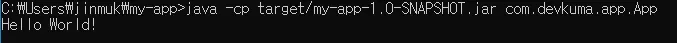 $ java -cp target/my-app-1.0-SNAPSHOT.jar com.devkuma.app.App