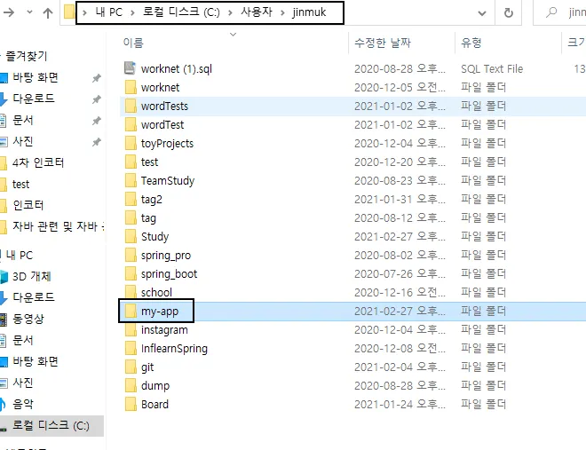 // 경로 설정 내 내 경로에 만든지 확인! cmd의 위치 기준 => 이건 다아실꺼니깐 스킵